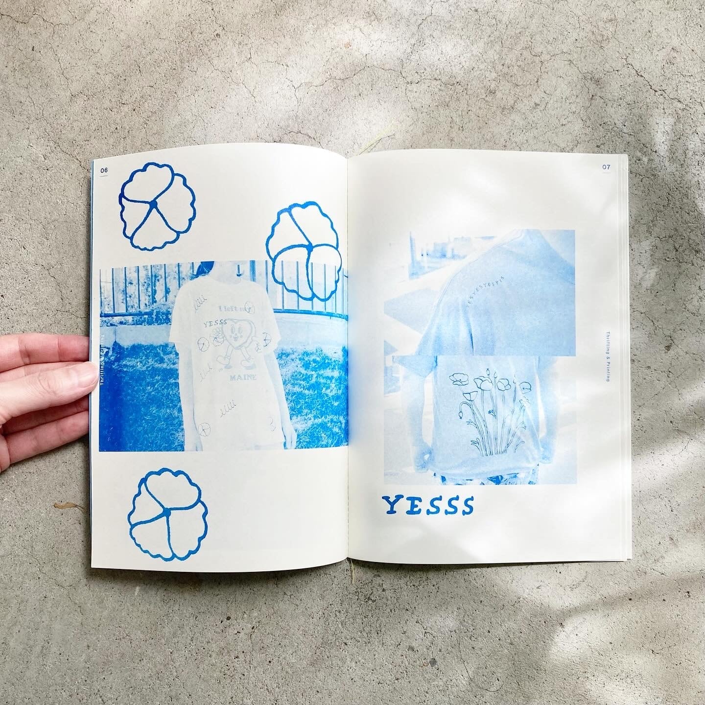 集めた古着にランダムにシルクスクリーンを刷った記録(2)です。黄色の糸で綴じています。